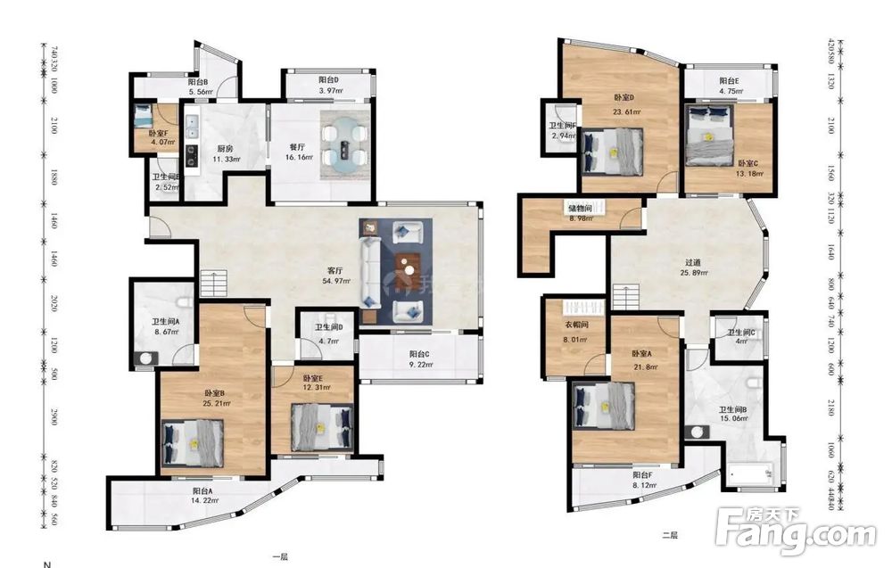 2、户 型:6室2厅3卫,朝向,卧室私密性好,得房率高。